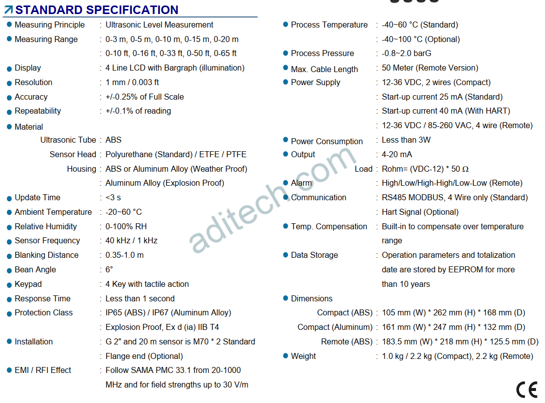 Cảm biến đo mức siêu âm là 1 thiết bị chuyên dụng dùng để xác định mực nước ( hoặc cũng có thể là dung dịch, nguyên liệu bất kì) đang ở trong bồn chứa. Hiện tại có nhiều cách để xác định mực nước này nhưng trong đó phương pháp đo bằng siêu âm tỏ ra là phương pháp chính xác nhất, hiện đại nhất vì nó cho phép người dùng theo dõi sự biến động 1 cách liên tục dù là nhỏ nhất; đồng thời việc lắp đặt cũng khá dễ dàng và nhanh chóng.
