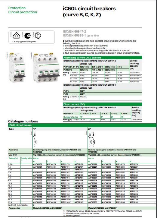 Mô tả: Aptomat Schneider MCB, dòng định mức 25A, dòng cắt ngắn mạch 15kA.